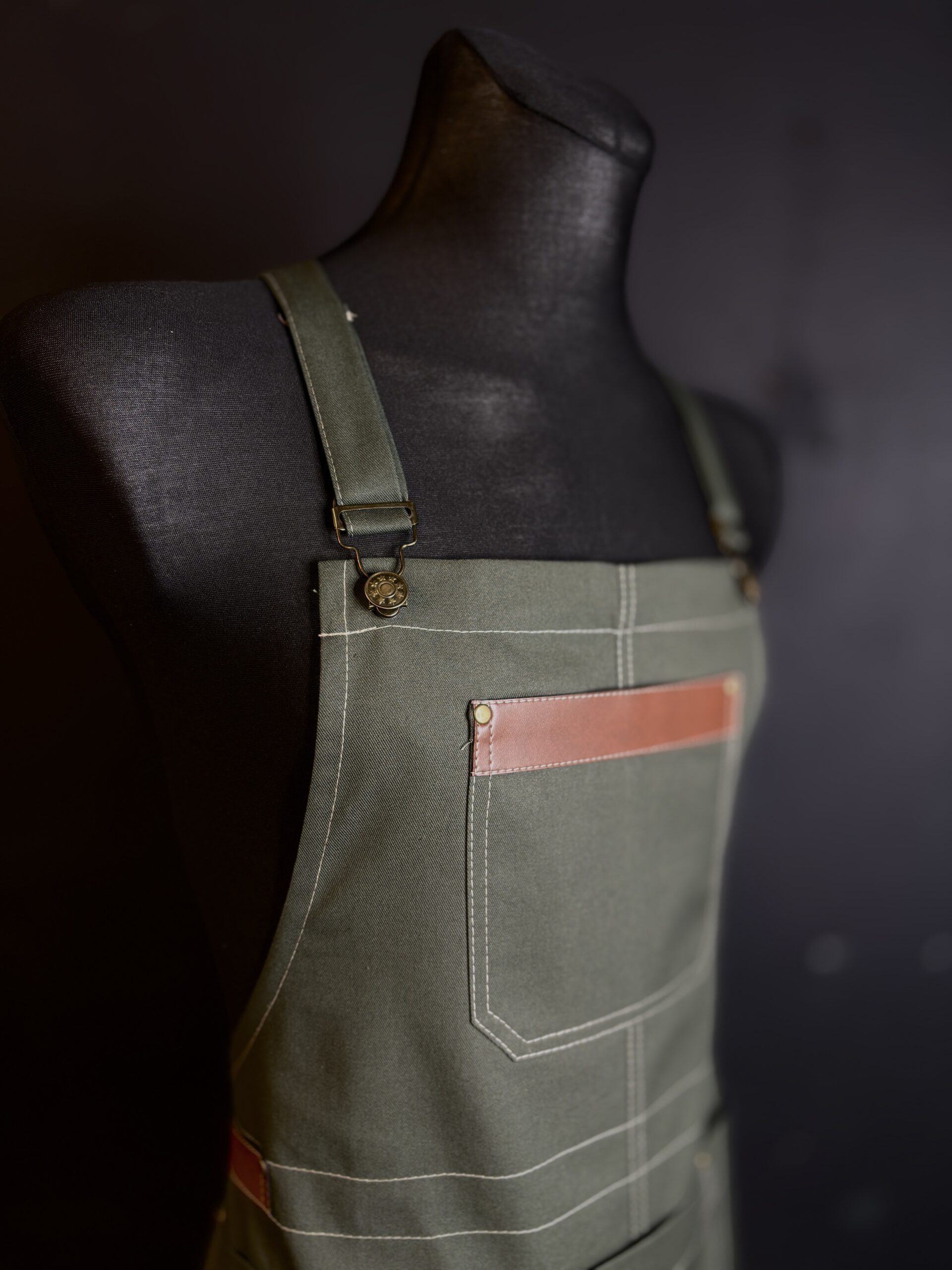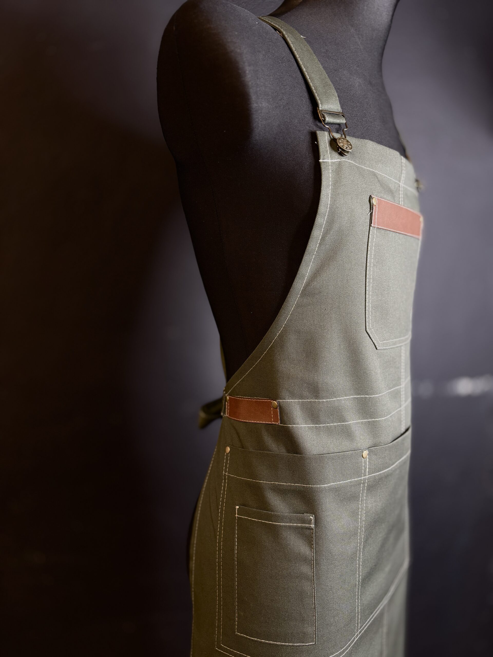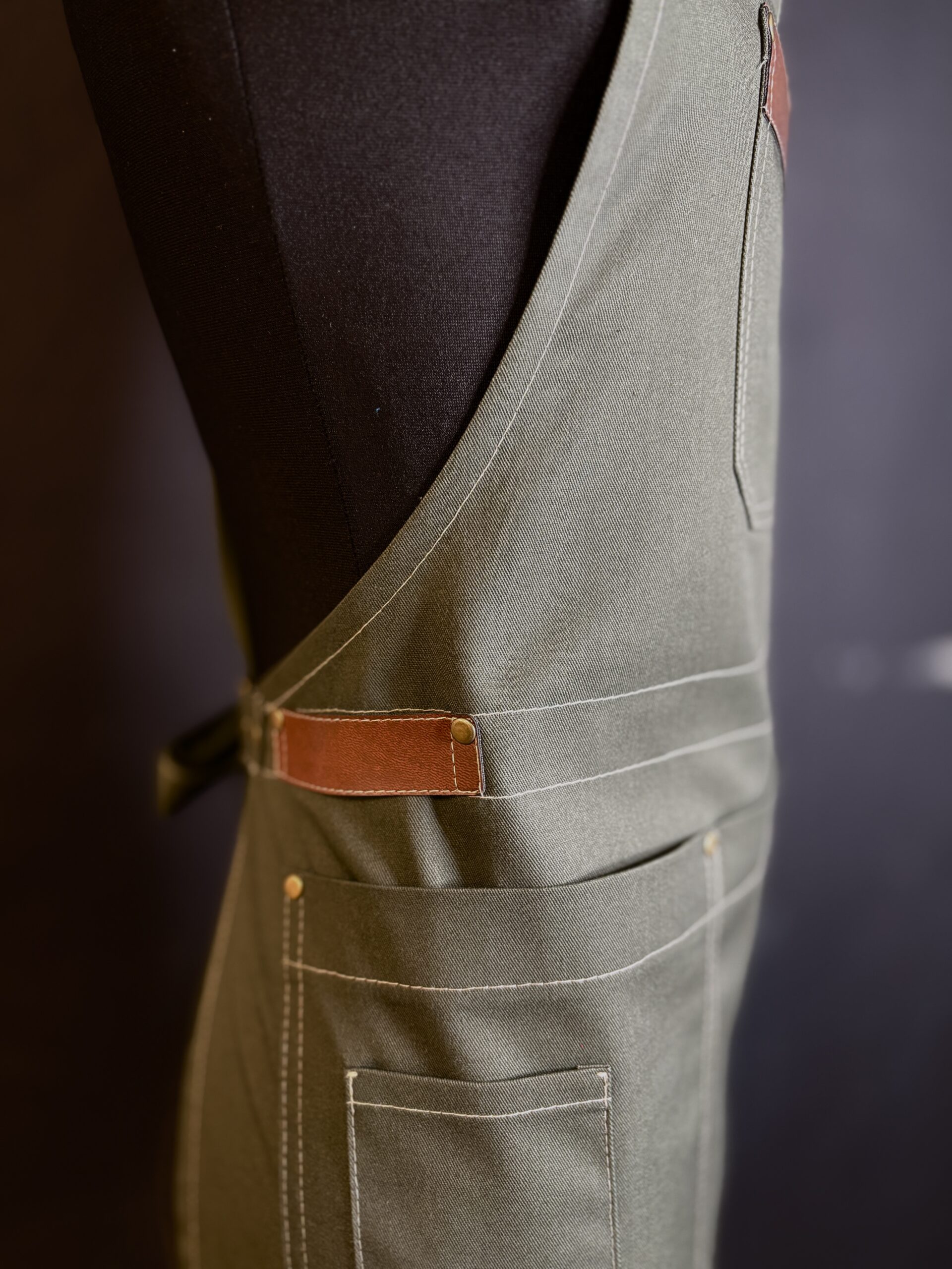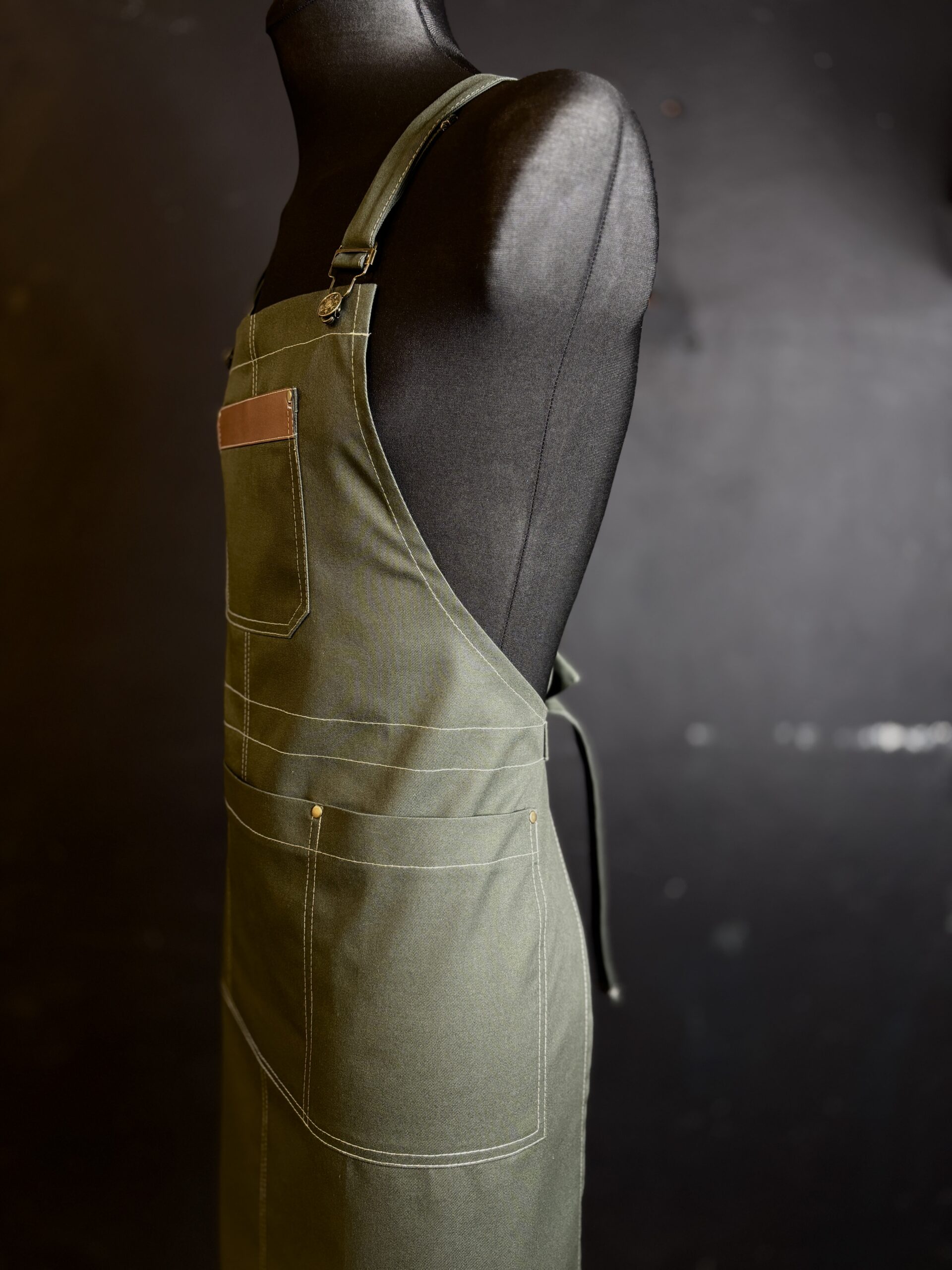 Fartuch był uszyty jako wzór do dalszej produkcji. wysokiej jakości materiały i dodatki idealnie go dopełniają.