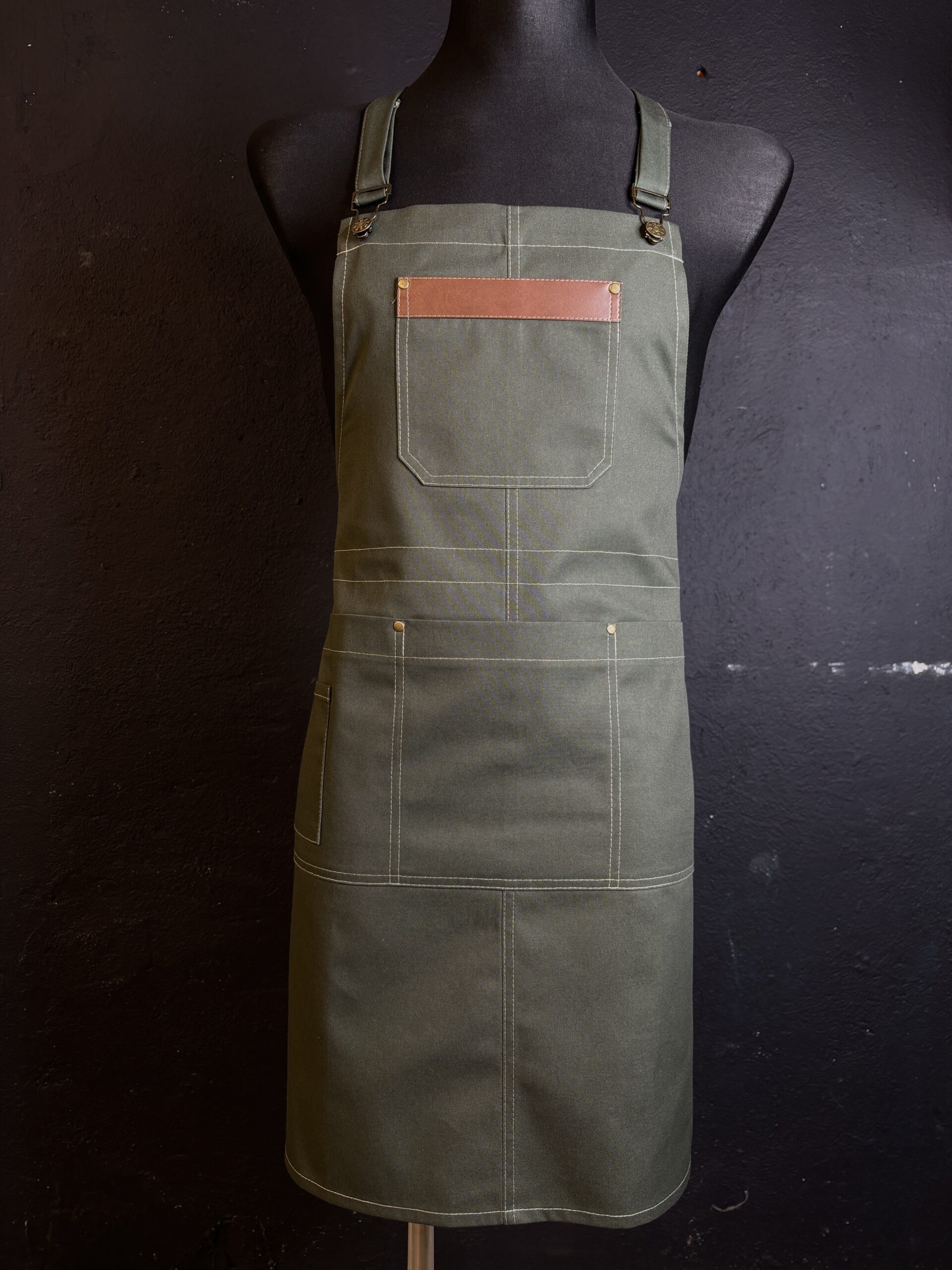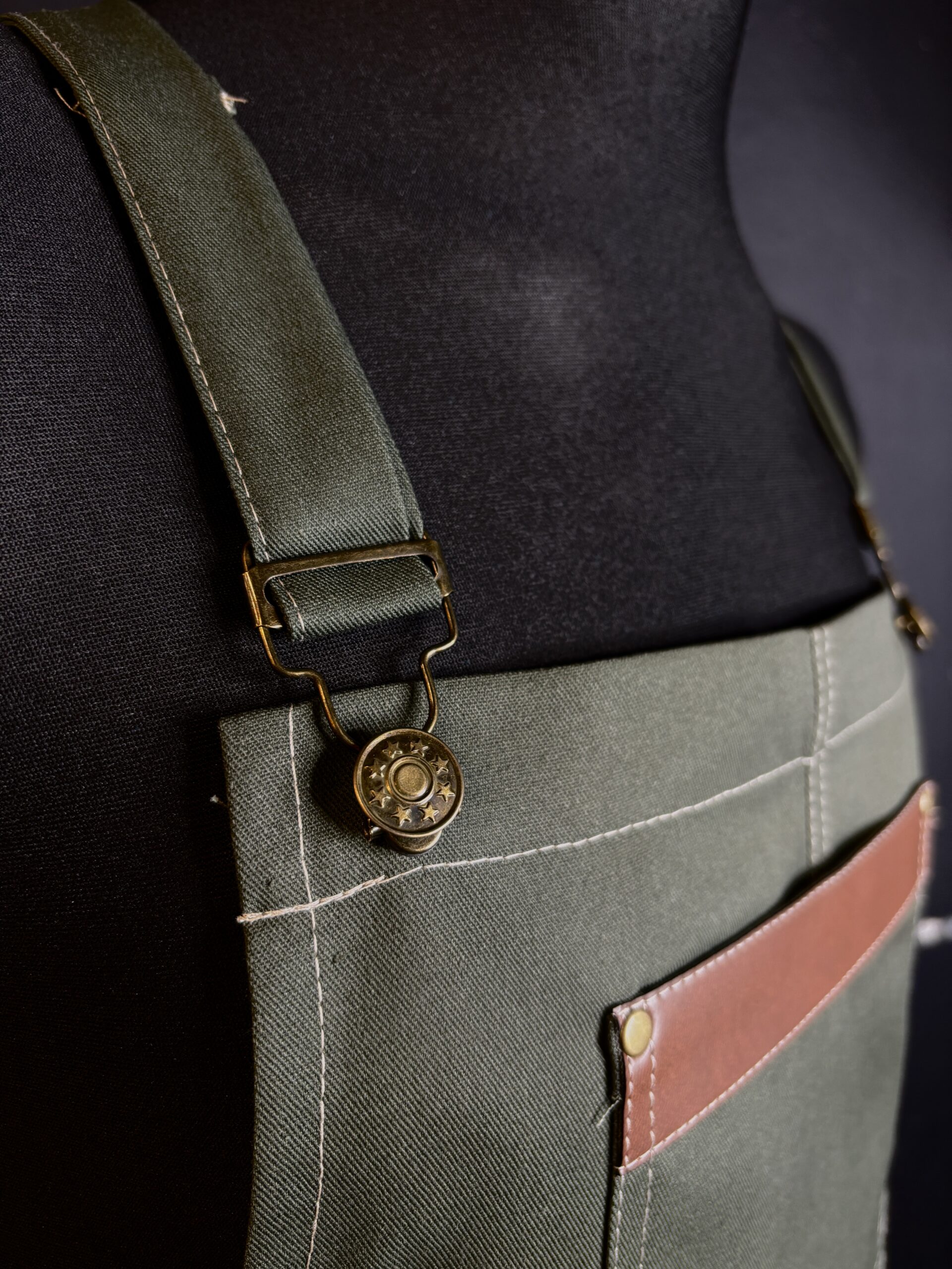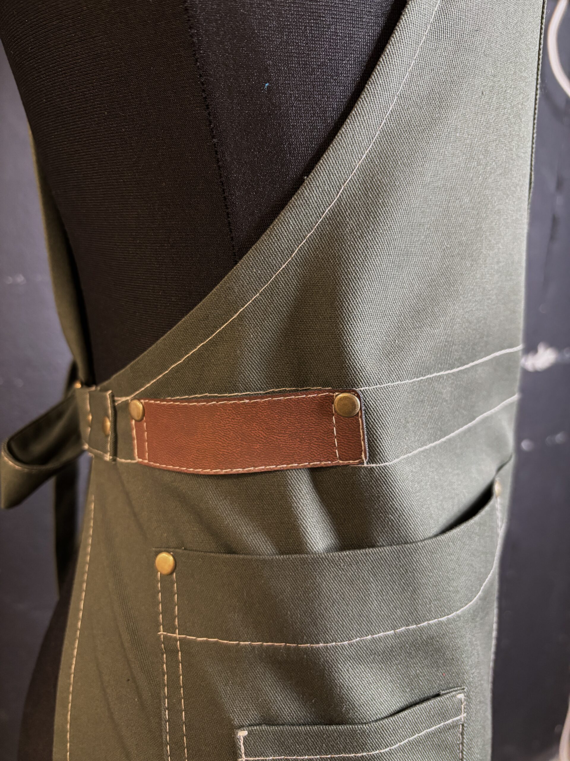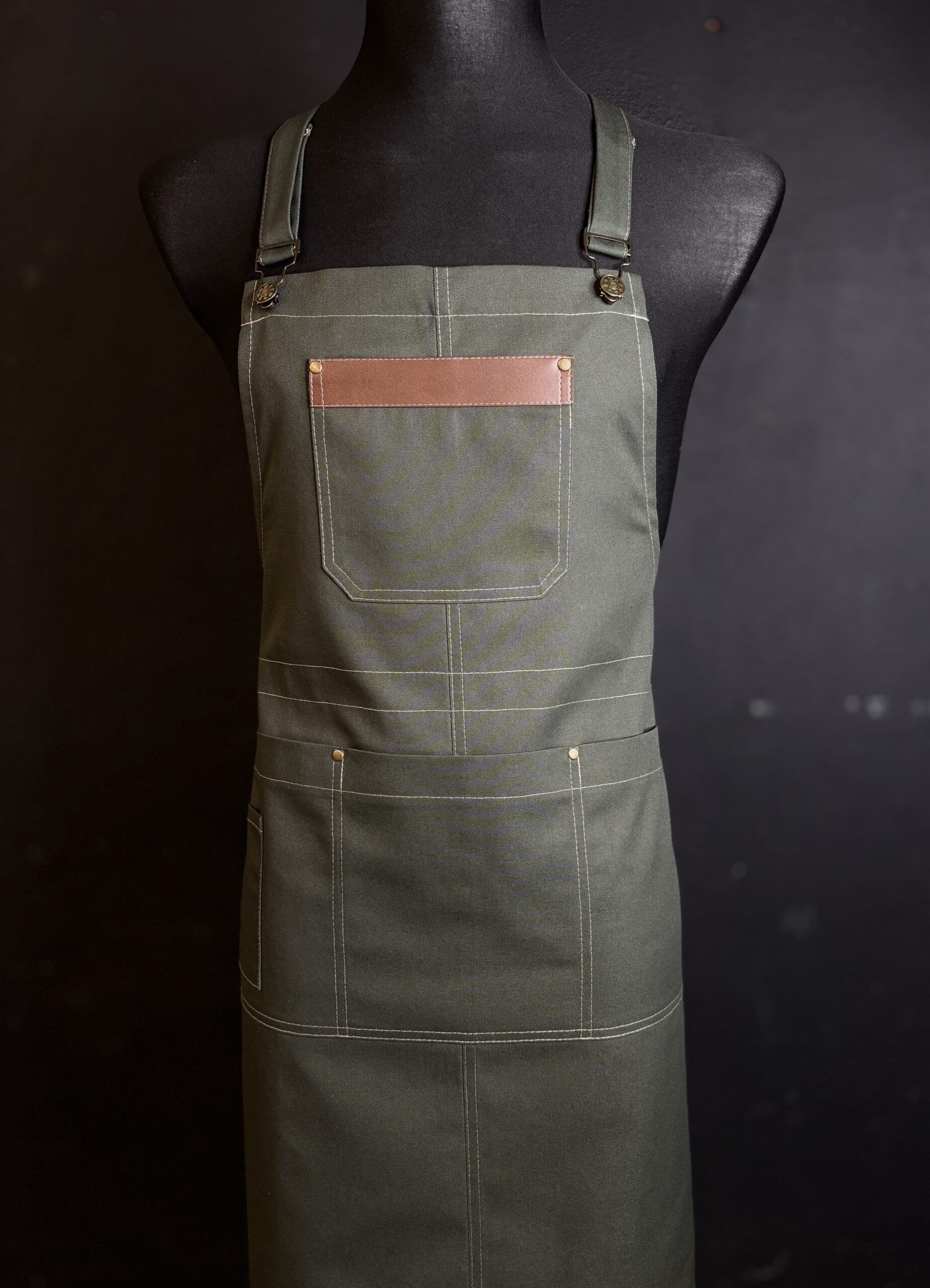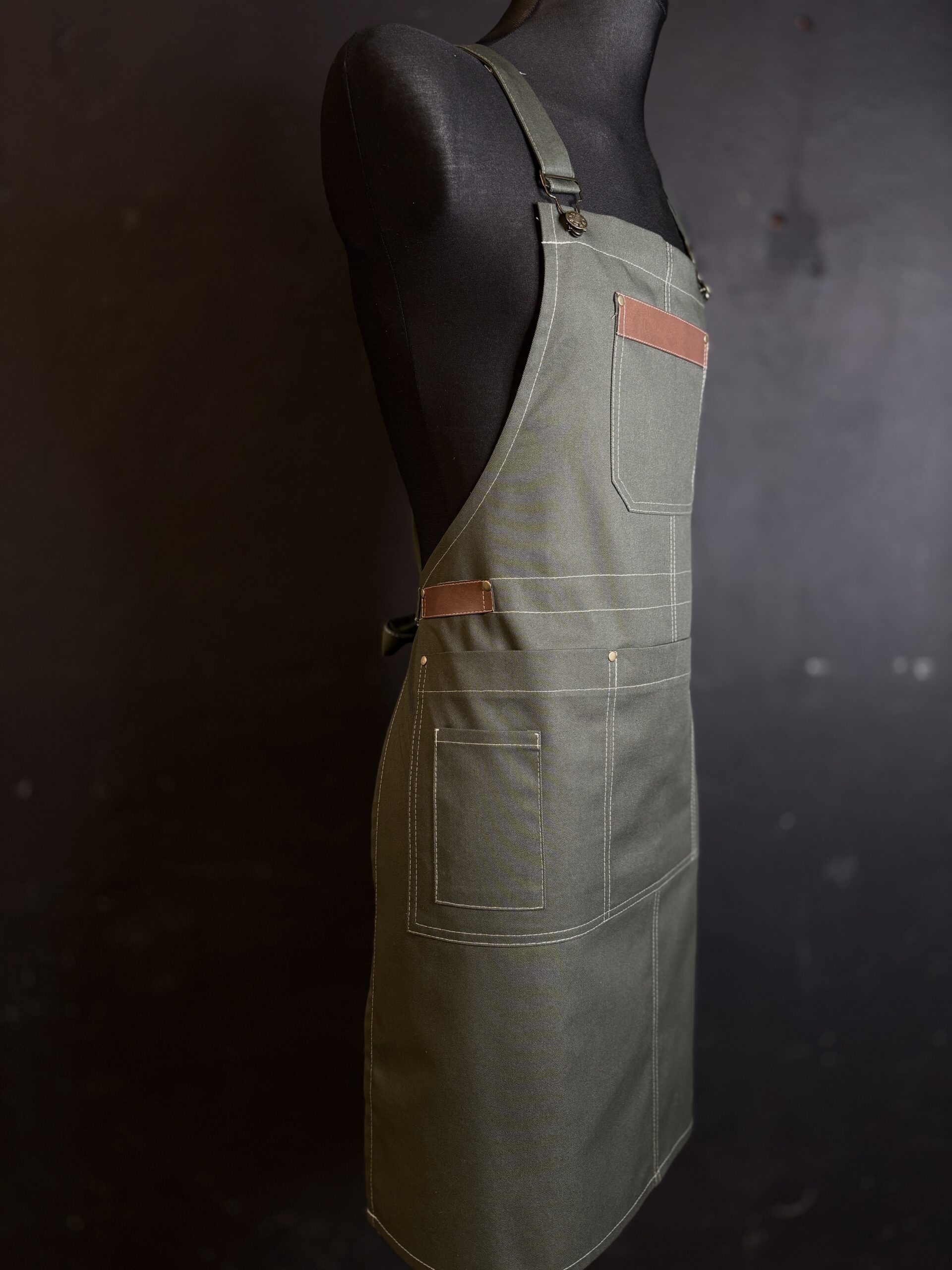Fartuch był uszyty jako wzór do dalszej produkcji. wysokiej jakości materiały i dodatki idealnie go dopełniają.
